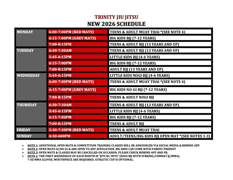 - Trinity Jiu Jitsu: Tuition is just $180 per month for Adults and Big Kids (Unlimited Classes and includes Trinity Strike for Big kids and Adults). For Little Kids, it is just $160 a month.